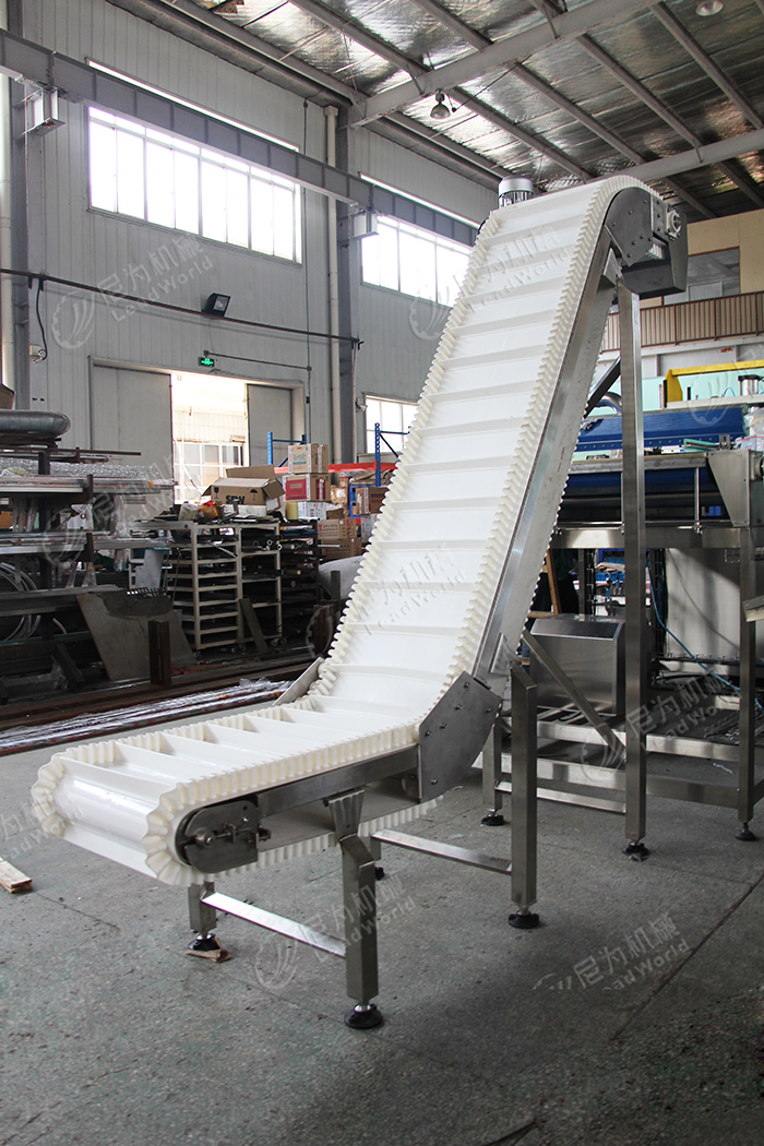 IME:2019-04-22 來源: 點擊數: 尼為機械面團皮帶輸送線裙裾帶擋板提升輸送線已調試完成,目前準備打包發貨。考慮客戶是物料是面團我司采用白色PVC皮帶輸送線,采用丹佛斯變頻器、施耐德電器元件,保證了設備高校運行,故障率低,大幅度提高了生產效率。